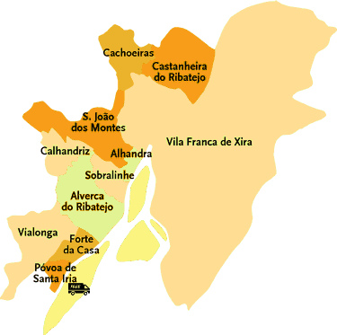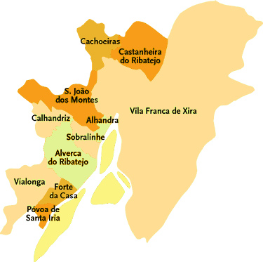 Alhandra, Alverca do Ribatejo, Cachoeiras, Calhandriz, Castanheira do Ribatejo, Forte da Casa, Povoa de Santa Iria, S. João dos Montes, Sobralinho, Vialonga, Vila Franca de Xira.